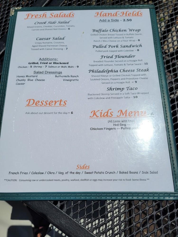Bear Creek Marina offers a diverse menu that highlights regional flavors. On the grill side, popular options include marinated steak tips, pulled pork dinners, and fried seafood baskets. The menu also features delicious appetizers like fried pickles and crab cakes, perfect for sharing with friends.